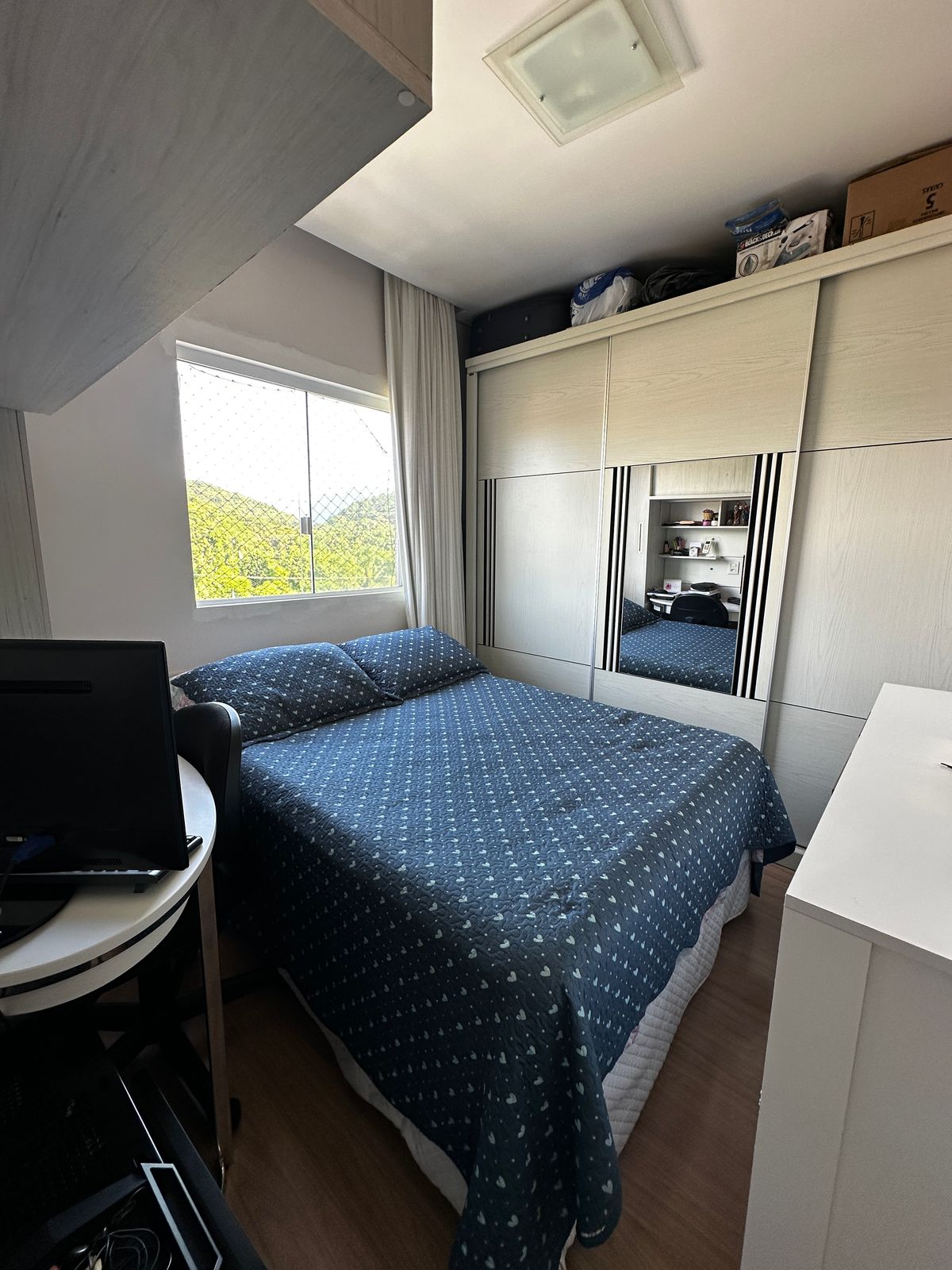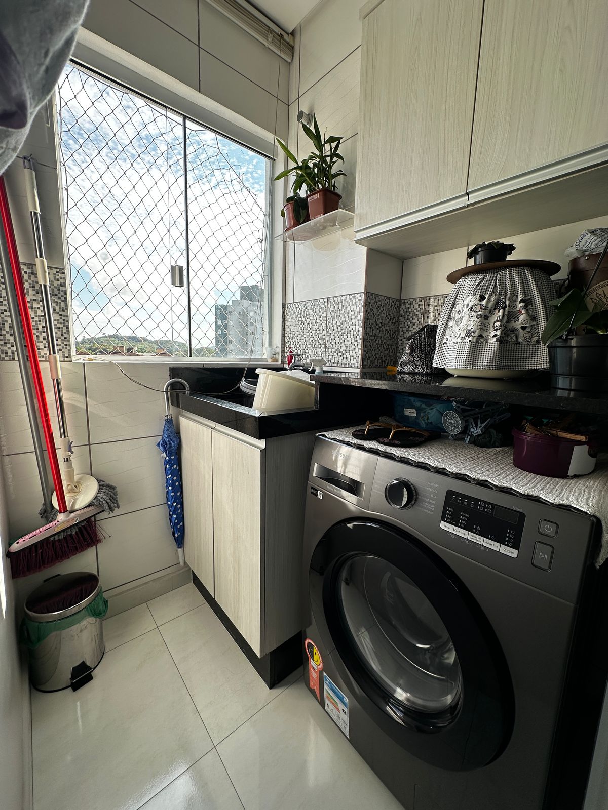 Fica no imóvel , cozinha planejada, móveis na lavanderia, móveis do banheiro e 1 ar condicionado no quarto do casal.