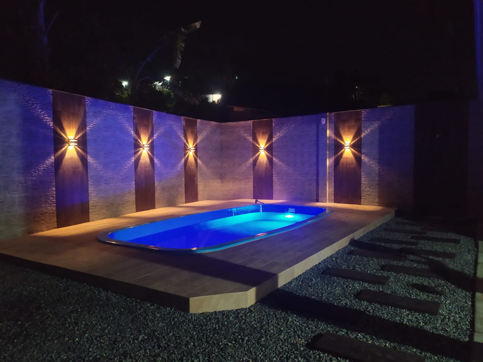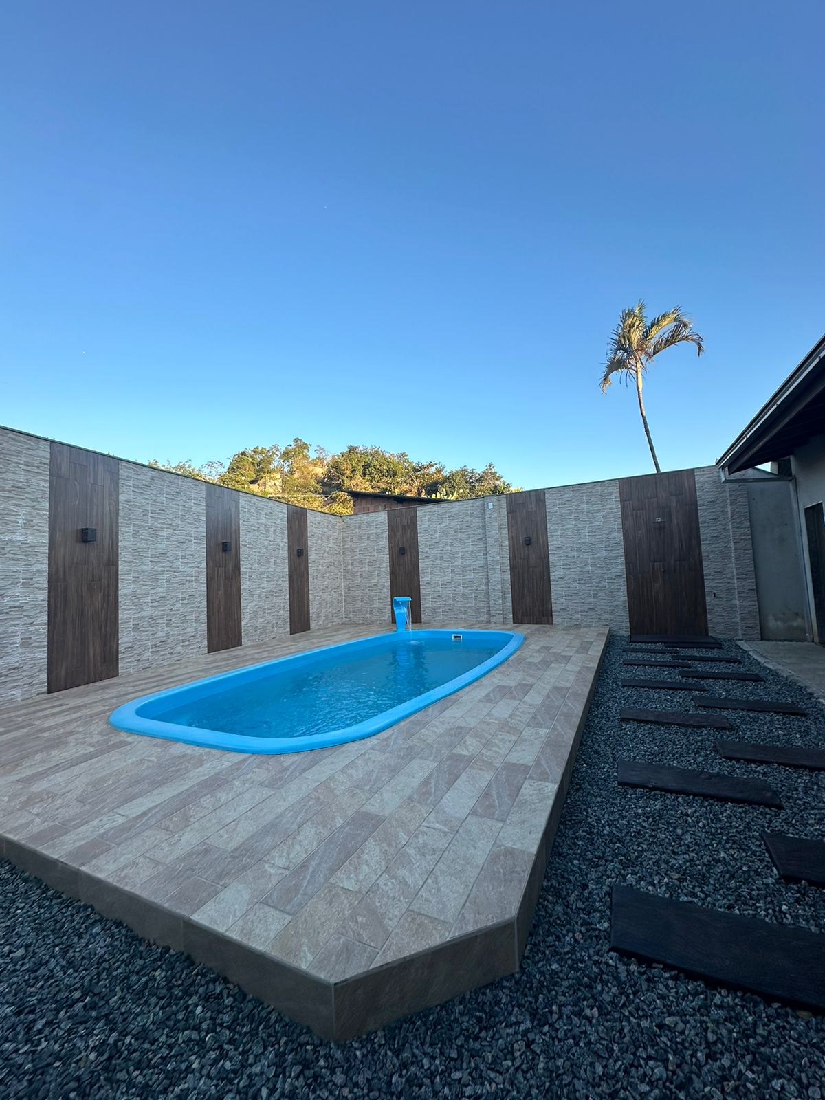 | Uma área grande de lazer com piscina