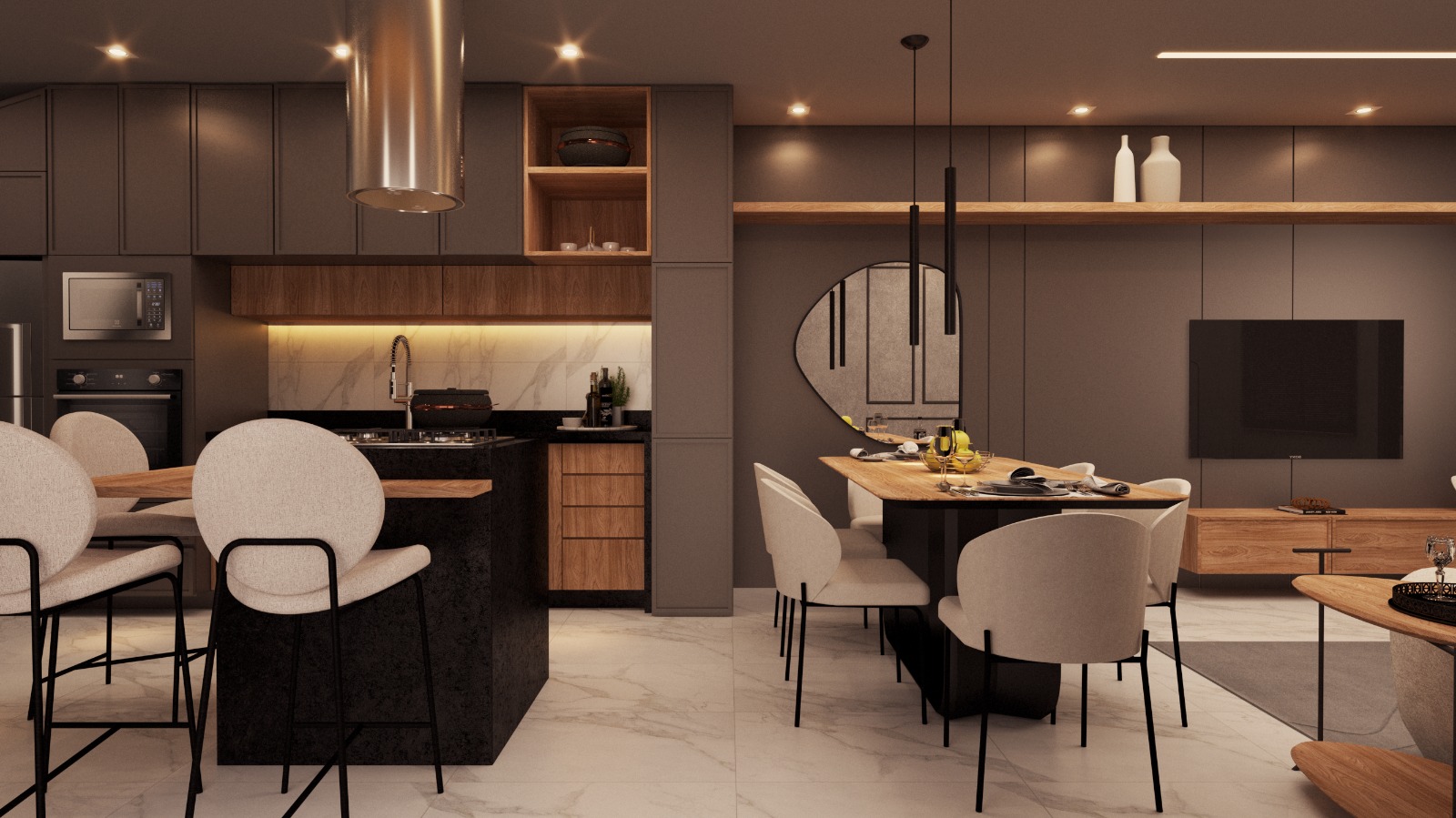 Tem móveis planejados