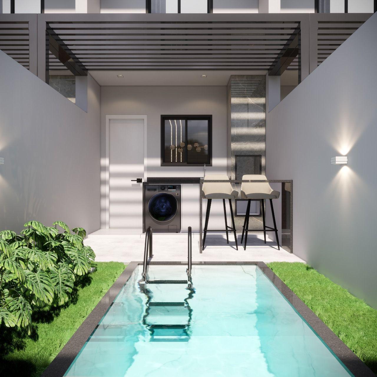 São 60m², com 2 quartos, sendo um deles com sacada, além de lavabo, o que traz mais conforto no dia a dia. Ele também oferece 2 vagas de garagem, 3,30m de abertura e um ótimo espaço externo com 6 metros nos fundos, ideal pra fazer uma área gourmet ou um cantinho verde.
