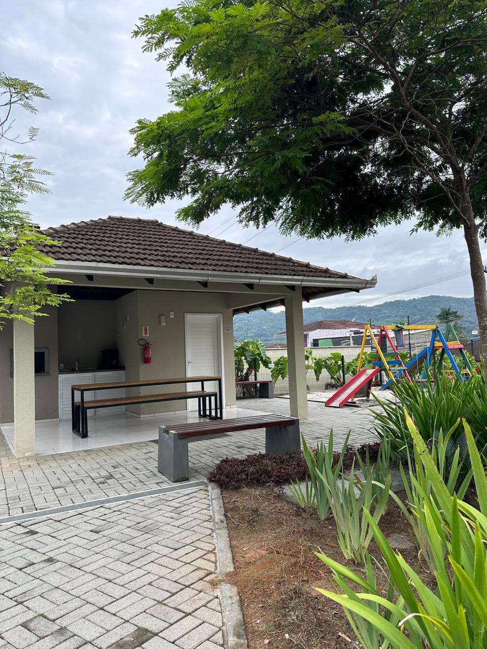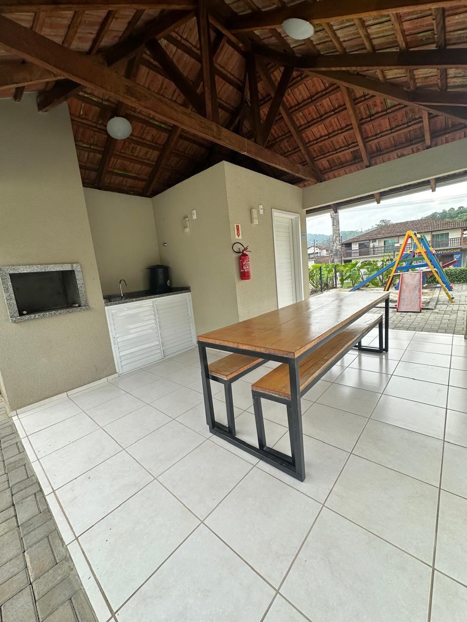 Quiosque com churrasqueira e banheiro